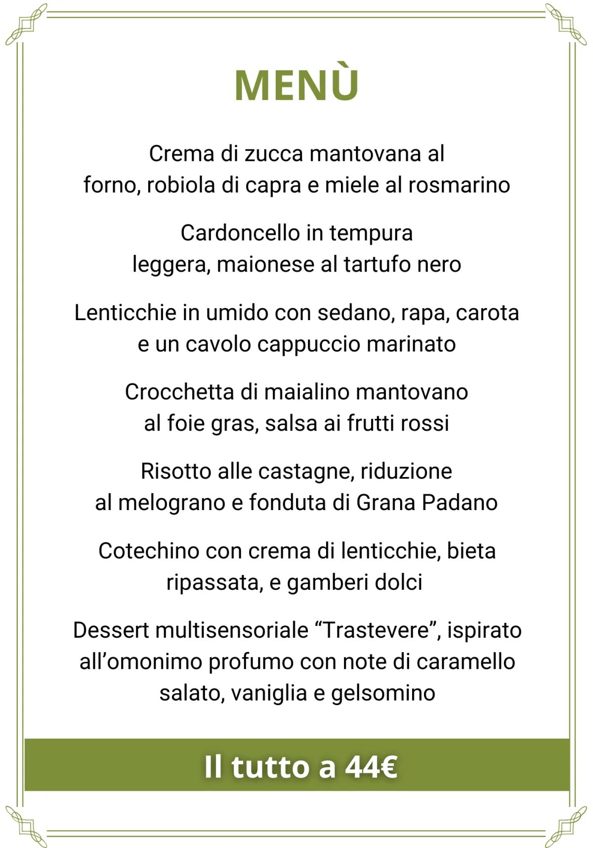 Un menù creato dai fratelli Bicchierai, riconosciuti tra le migliori firme gourmet del Mantovano.
